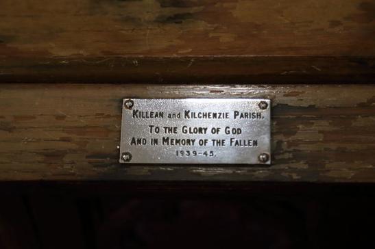 KILLEAN AND KILCHENZIE PARISH. / TO THE GLORY OF GOD / AND IN MEMORY OF THE FALLEN / 1939 - 45.