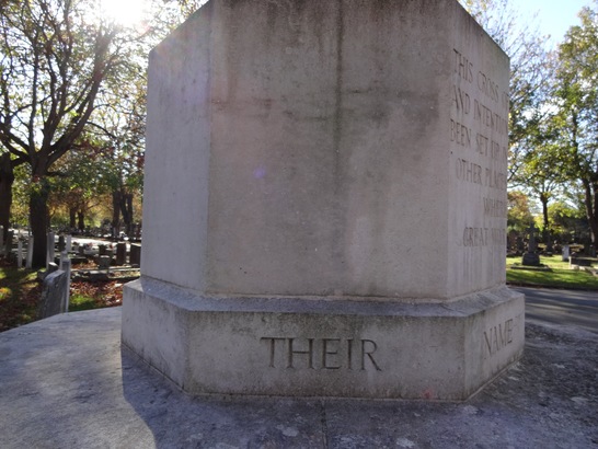 Hanwell Cemetery, formerly City of Westminster Cemetery, Cross of Sacrifice, right inscription - Taken by A. Goble 29 Oct 2018