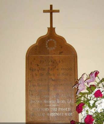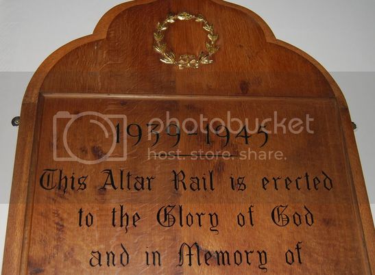 1939-1945/This Altar Rail is erected/to the Glory of God/and in Memory of/ [4 names]/SPLENDID YOU PASSED/THE GREAT SURRENDER MADE