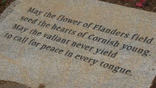 "May the flower of Flanders Field/ Seed the hearts of Cornish Young/. May the valiant never yield/ to call for Peace in every tongue"