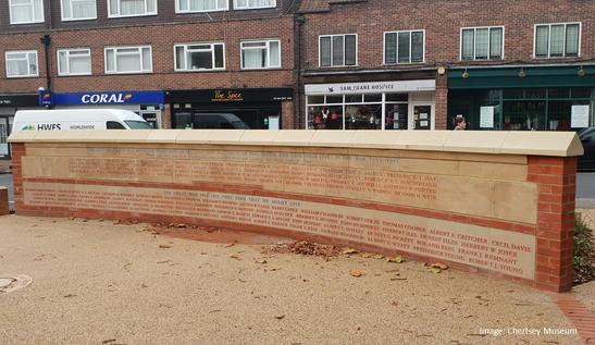 Virginia Water War Memorial poppy frieze - Taken by Chertsey Museum 09 Nov 2018