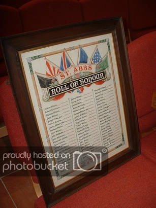 ST. ABBS/ ROLL OF HONOUR/ (NAMES)/ FOR KING & COUNTRY/[68 names of whom 6 fell]