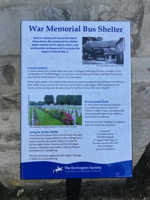 In memory of David Parry-Jones 1st Bt The Rifle Brigade killed in action in France 3rd August 1944
