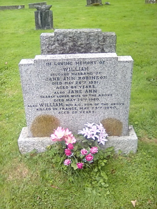 …../ALSO WILLIAM [ROBINSON], W.O. A.C. SON OF ABOVE/KILLED IN FRANCE, MAY 24TH 1940/AGED 20 YEARS