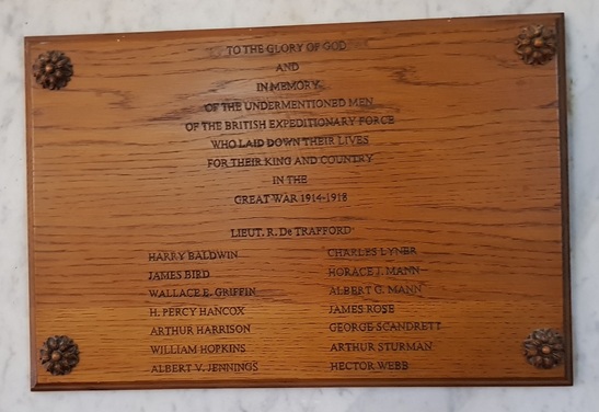 To The Glory of God and in Memory of the Undermentioned Men of the British Expeditionary Force Who Laid Down Their Lives For Their King and Country in the Great War 1914-1918