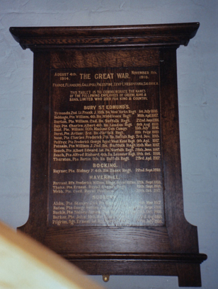AUGUST 4TH 1914 THE GREAT WAR NOVEMBER 11TH 1918/ FRANCE, FLANDERS, GALLIPOLI, PALESTINE, EGYPT, MESOPOTAMIA, SALONIKA/ THIS TABLET IS TO COMMEMORATE THE NAMES/ OFTHE FOLLOWING EMPLOYEES OF GREENE KING AND/ SONS LIMITED, WHO DIED FOR KING AND COUNTRY/ (NAMES)