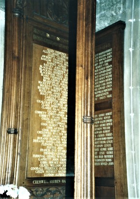 ROLL OF HONOUR/ THE GREAT WAR 1914-1918/ (NAMES)/ 1939-1945/ (NAMES)