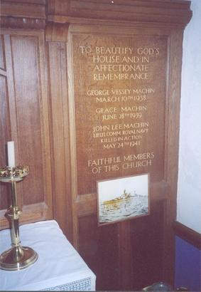 JOHN LEE MACHIN LIEUT.COMMN. ROYAL NAVY KILLED IN ACTION MAY 24TH 1941