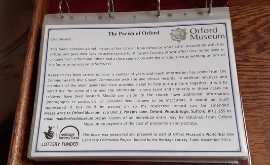 Orford WW1 Roll of Honour - Taken by Brian Fare 30 Sep 2020