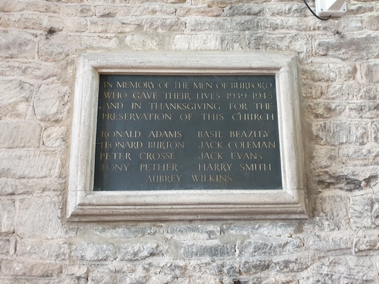 In memory of the men of Burford who gave their lives 1939 1945 and in thanksgiving for the preservation of this Church.