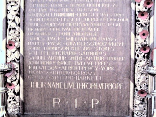 George Ashling, Cecil Sidney Adams, Albert Andrew, Harry Andrews, William Allcock, George Henry Baxter, Francis John Brown, Bertie Burton, Francis Edward Bains, John Walter Goodyear Burton, Frederick William Bowman, Charles Edward Borrows, Benjamin Borrows, John Herbert Beeby, Percy Chamberlain, Henry Collin, John William Blanchard Chapman, George Cooper, Charles Edward Clark, Jack Dade, Wilfred Edwards, George Eliff, Bertus John Van Elk, William Charles Edwards, Fred Faulkner, Harry Goodrum, Jack Goodison, Leonard Healey, Arthur Hanes, Henry Holderness, William Matthew Hewson, Thomas Ketteringham, Ernest Longford, John Robt. Lissett. Herbert Longford, James Norman Merryweather Losh., Richard Percival Metcalfe, Meaburn Staniland Page, James Pack. William Richards, Harry Pask, Charles Stacey Reeve, John Thompson, Nelson Stokes, Walter Richard Saunders. Samuel Arthur Smith, Arthur Tinkler, John Henry Brice Twelvetrees, Tom Wilson, Albert Percy Yorke, Thomas Arthur Borrows, Arthur Barnett.