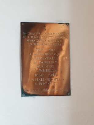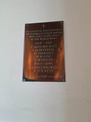 In Grateful Remembrance of the men of Aston Magna who gave their lives in the World Wars 1914 - 1918 1939 - 1945 Be Thou Faithful unto death