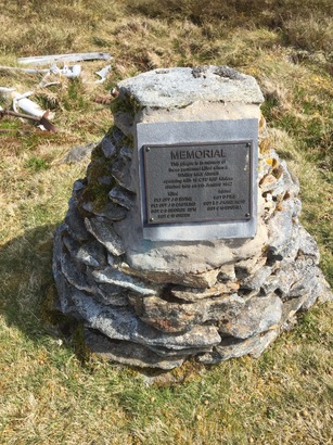 MEMORIAL/This plaque is in memory of/those personnel killed when/Whitley Mk V Aircraft/operating with 19 OTU RAF Kinloss/crashed here on 6th January 1942/[4 names]