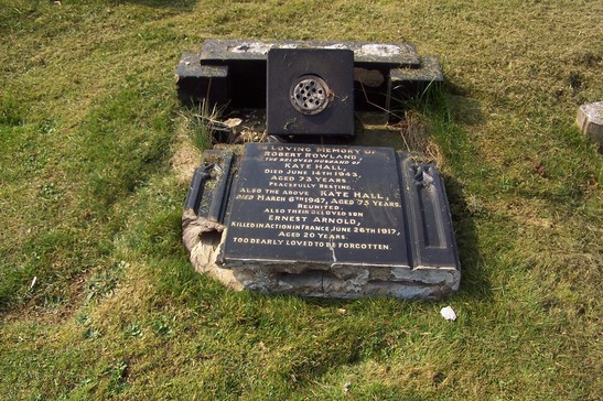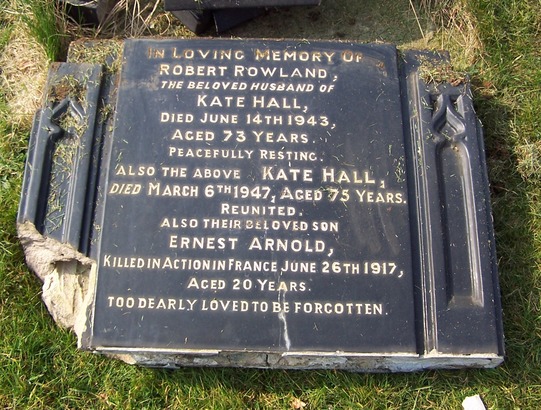 Refers to:- Ernest Arnold Hall, 242547, Private, 1st/5th Bn. Lincolnshire Regiment. Son of Robert Rowland Hall and Kate Hall, of 107, Buckingham St., Crosby, Scunthorpe, Lincs. Killed in action 26th June 1917, aged 20, interred Loos British Cemetery, Pas de Calais, France. XIX. D. 15.