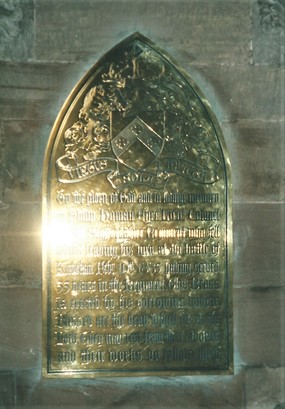 To the glory of God and in loving memory of Philip Homan Eyre, Lieut Colonel 1st S Staffordshire Regiment who fell whilst leading his men at the battle of Kirbekan Feb 10th 1885. having served 33 years in the regiment.. This plaque is erected by his sorrowing widow.