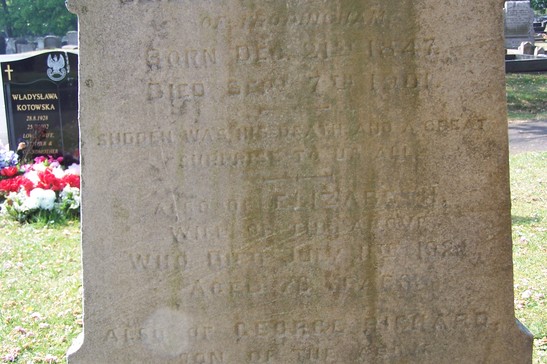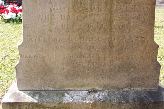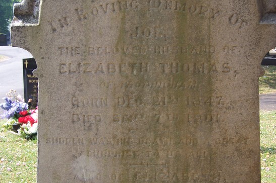 In Loving Memory Of / Joe / The Beloved Husband Of / Elizabeth Thomas / Of Frodingham / Born Dec. 21st 1847 / Died Sept 7th 1901 / Also Of Elizabeth / Wife Of The Above / Died July 11th 1924 Aged 78 Years / Also Of George Richard Son Of The Above Who Was Lost During The Great War 1916 / At Rest