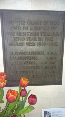 TO THE GLORY OF GOD AND IN MEMORY OF THE MEN FROM/ TIDMARSH WHO FELL IN THE GREAT WAR 1914 - 1918/ (NAMES)