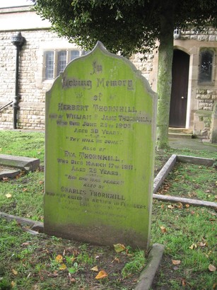 In/ Loving Memory/ of/ Herbert Thornhill,/ Who Died June 25th 1903,/ Aged 30 Years./ "Thy Will Be Done"./ Also Of/ Eva Thornhill,/ Who Died March 11th 1911,/ Aged 25 Years/ "Her End Was Peace"./ Also Of Charles Thornhill/ Who Was Killed In Action In Flanders/ Oct 13th 1915. Aged 25 Years/ "Greater Love Hath No Man"