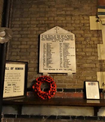 ROLL OF HONOUR / IN GLORIOUS MEMORY OF / THOSE SCOUTS CONNECTED WITH THIS CHURCH WHO / DIED IN THE SERVICE OF / THEIR COUNTRY / 1939-1945 /(Names)