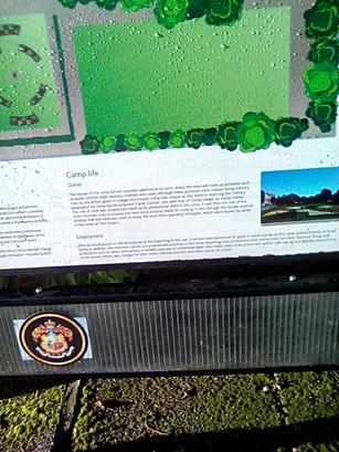 Stainless steel plaque-Hutchinson Square-Internment Camp/The 1st year students of the Isle of Man College National Diploma in Art/and Design, have undertaken a project to commemorate the artists who/were interred on the Island in 1940, as part of 'Douglas in Bloom'./During the Second World War there were ten civilian internnment camps/on the Island which housed many aliens, who had been arrested/throughout Britain when Churchill ordered the police to "collar the lot!"./Hutchinson camp, which compromised of the square and the adjoining/terrace on Broadway was remarkable in that it held a high proportion of/artists, intellectuals and musicians and many lectures took place in the/summer sunshine on the lawns./Famous visual artists such as the collagist, Kurt Schwitters were/interned here along with expressionist Ersch Kahn. The members of/the world famous Amadeus String Quartet first met each other there,/Rawice and Landauer, the popular piano duo were reunited after the/camp commander Captain Daniel succeeded in pulling strings./Once again, Captain Daniel made every effort to supply artist materials/as could be scraped together. Artists like Fred Ulman, Ludwig Meifner,/Ernst Blendorf, Helmuth Weisenborn, Fritz Solomonski, Arthur/Segal, Henry de Boys Roessingh, Peter Fleischmann (Midgeley), Paul/Helmann, Hermann Fechenbach and others unnamed benefited from his/good will towards those people who had fled oppression in their own/countries./A series of ornamental tiles, all designed and made by Isle/of Man College Manx art students, are positioned in Hutchinson/Square gardens in memory of these people and the dark times that/they lived through