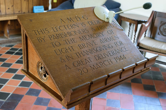 A.M.D.G This lectern is dedicated be parishioners & friends to the memory of eight brave airmen & in thanksgiving for a great deliverance 20 March 1944