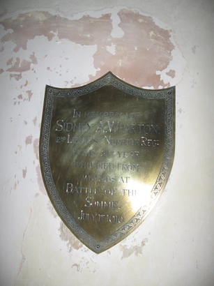 In Memory Of / Sidney A Wharton, / 2nd Lieut Norfolk Reg / In His 21st Year / Who Died From / Wounds At / Battle Of The / Somme / July 1st 1916.