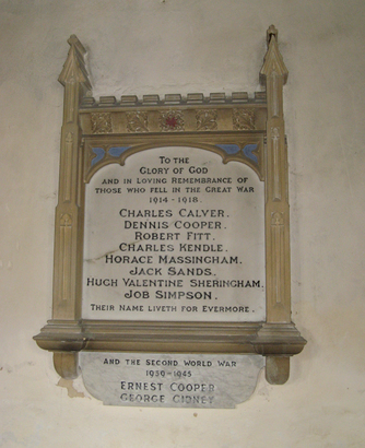 To The / Glory Of God / And In Loving Remembrance Of / Those Who Fell In The Great War / 1914 - 1918 / (Names) / Their Name Liveth For Evermore. / And The Second World War / 1939 - 1945 / (Names)