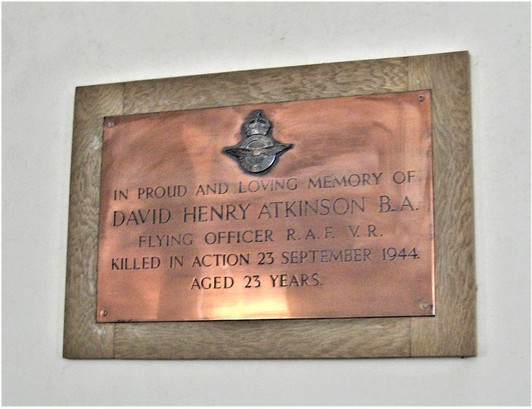 In Proud And Loving Memory Of / David Herny Atkinson B.A. / Flying Officer R.A.F. V.R. / Killed In Action 23 Sep 1944. / Aged 23 Years