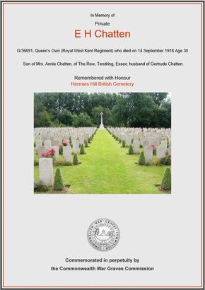 CWGC certificate. - Taken by CWGC / pete stacey. 20 Dec 2019