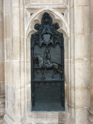 At right of horse sculpture: BALACLAVA/ SEBASTAPOL/ INKERMAN/ TCHERNAYE/ Below: TO THE DEAR MEMORY OF GENERAL WILLIAM CHARLES FORREST C.B. COLONEL 11TH P.A.O. HUSSARS FORMERLY OF THAT REGIMENT AND OF THE 4TH AND 7TH DRAGOON GUARDS. BORN 1817, DIED 1902. HE SERVED IN THE CRIMEA CAMPAIGN 1834-35. MENTIONED IN DISPATCHES. BREVET OF (...) DISTINGUISHED SERVICE (...) (Exact line spacing unknown). 'O LORD TO EACH AND TO ALL AND ONE/ CHARGE THAT THEY (...)/ MAKE THEM TO BE NUMBERED WITH/ THY SAINTS IN GLORY EVERLASTING'