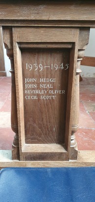 WW1 - John Childs. Reginald Harvey, Bernard J Muriel, Walter Pye, Robert Scott, George Spinks, Frederick Watts. WW2 - John Hedge. John Neal, Beverley Oliver, Cecil Scott