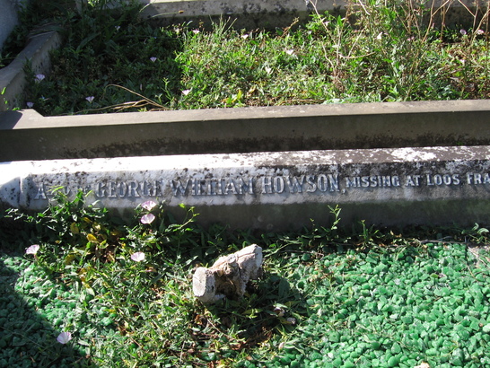 Headstone: (Unknown) Right Kerb: In Loving Memory Of Elizabeth Howson, Died June 13th 19129, Aged 75 Years. Left Kerb: Also Of George William Howson, Missing At Loos France, October 13th 1915, Aged 28 Years. A. Howson Bottom Kerb: Death Is Swallowed Up In Victory