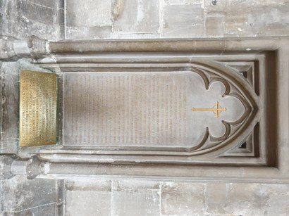 IN LOVING MEMORY OF CHARLES MAYO F.R.C.S / 3RD SON OF THE REV. JAMES MAYO VICAR OF AVEBURY, / WIMBORNE. BORN DEC 29 1788, SURGEON TO THE / ROYAL COUNTY HOSPITAL, WINCHESTER 1811 – 1871 / THRICE MAYOR OF THE CITY. AFTER A LIFE OF / UNCEASING ACTIVITY AND WARM DEVOTION TO HIS / PROFESSION. HE FELL ASLEEP NOV 27 1876. / CHARLES MAYO M.D. HIS ELDER SON FELLOW OF NEW / COLLEGE OXFORD KNIGHT OF THE HESSIAN ORDER OF / PHILIP THE GENEROUS, HE SERVED WITH DISTINCTION / IN THE AMERICAN WAR, IN THE FRANCO-PRUSSION / WAR AND DUTCH CAMPAIGN IN ATCHIN AND LASTLY HELD / THE POST OF MEDICAL OFFICER IN THE FIJI ISLANDS, / AND ABLE MUSIC AND ARCHITECT BUT CHIEFLY KNOWN / AND BELOVED FOR HIS UNSELFISH CARE OF THE SICK / AND WOUNDED HE DIED AND WAS BURIED AT SEA BETWEEN / LEVUKA AND SYDNEY JULY 15 1877 AGED 40 YEARS. / JAMES MAYO B.D. L.L.D. TRINITY COLLEGE CAMBRIDGE / HIS YOUNGER SON DIED APRIL 15 1920 AGED 79 YEARS. / AND OF HIS SONS WM. CHARLES MAYO B.A. ST CATHERINES / COLLEGE CAMBRIDGE. LIEUT 9 BATT SHERWOOD / FORRESTERS KILLED IN ACTION, SUVLA GALLIPOLI / AUGUST 9, 1915, AGED 27 YEARS, AND OF / ALEXANDER JOHN MAYO S.I.C.E. CAPT. R.A.F. KILLED / IN ACTION IN FRANCE AUGUST 9 1918 AGED 23 YEARS. / “THEY DIED FOR FREEDOM AND HONOUR” / GREATLY BELOVED BRASS PALQUE INSCRIPTION IN LOVING MEMORY OF JANE DAUGHTER / OF CHARLES MAYO F.R.C.S. 7 MARCH 1838 - / 8 OCTOBER 1884 AND MARY HIS YOUNGER / DAUGHTER 10 JULY 1839 – 26 JUNE 1939 / LIFELONG FRIENDS OF THIS CATHEDRAL / ALSO OF ANNE WIFE OF JAMES MAY B.D. L.L.D. / 12 APRIL 1857 – 19 JULY 1960 AND ROBERT / HOBART MAYO O.B.E. F.R.A.E.S. MAJOR R.F.C. / THEIR SON 25 SEPTEMBER 1890 – 26 FEBY 1957 / INVENTOR OF MAYO COMPOSITE AIRCRAFT