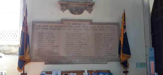 In memory of/ The men of Hadleigh who gave their lives in the service/ of the country in the Second World War 1939-1945/ (Names)/ Because I live, ye shall live also