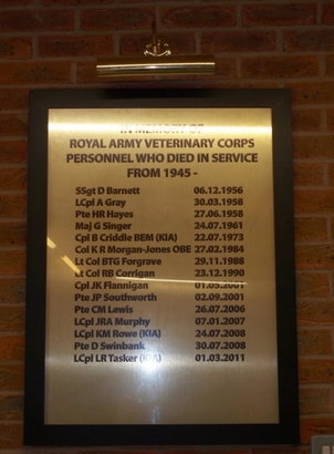 IN MEMORY OF / ROYAL ARMY VETERINARY CORPS / PERSONNEL WHO DIED IN SERVICE / FROM 1945 -