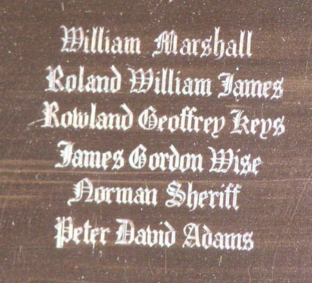 William Marshall Roland William James Rowland Geoffrey Keys James Gordon Wise Norman Sherriff Peter David Adams