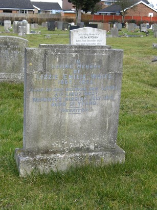 In / Loving Memory / Of / Lizzie Emilie White, / 1867 – 1952 / Also Of Her Beloved Son (Jim), / 5th Lincs Regt / Reported Missing July 1917, / Aged 21 Years. / Reunited The name ‘Jim’ appears to be nickname used by family only, given name would appear to be Herbert White. Lizzie Emilie White with husband Albert Edward White is present Brigg 1911 census, together with son Herbert White (born c1895, Collingham Notts).