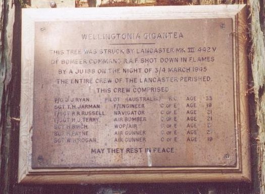John Joseph France Ryan, Flying Officer, 428364, Royal Australian Air Force. Son of John Frederick and Julia Ryan; husband of Jean Elizabeth Ryan, of Hawthorn, Victoria, Australia.. Interred Cambridge City Cemetery. Thomas Handley Jarman, Sergeant (Flt. Engr.), 3010499, 44 Sqdn, Royal Air Force Volunteer Reserve, Son of John Thomas Jarman and Doris Jarman, of Offerton, Cheshire. Interred Stretford Cemetery, Lancs. Richard Raven Russell, 1801287. RAFVR, Son of James Henry and Alice Anna Russell, of Hove. Interred Hove New Cemetery, Sussex Hubert Joseph Terry, 1580082, RAFVR, Son of George and Rose Terry, of Balsall Heath, Birmingham. Interred Birmingham (Brandwood End) Cemetery Harry Birch, 1575035, RAFVR, Son of John Henry and Elizabeth Ellen Birch, of Nottingham. Interred Cambridge City Cemetery. Herbert Payne, 1589407, RAFVR, Son of Frederick and Margaret Payne, of Walton, Liverpool. Interred Liverpool (Kirkdale) Cemetery. William Henry Rogan, 2218611, RAFVR, Son of William and Gertrude Rogan, of Liverpool.. Interred Liverpool (Allerton) Cemetery.