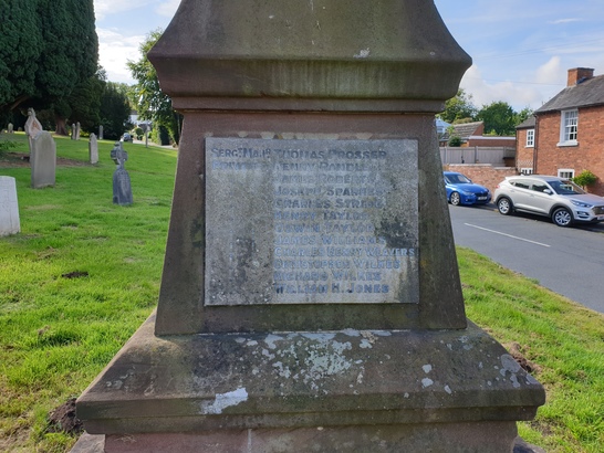 PRIVATE THOMAS AMPHLETT, CORPORAL REGINALD BELL, PRIVATE WALLACE BERRY, PRIVATE JAMES BLOUNT, PRIVATE ALFRED BOLAS, PRIVATE HENRY BOSWELL, PRIVATE JOSEPH BREAKWELL, PRIVATE CYRIL CLINTON, PRIVATE WILLIAM COLEMAN, PRIVATE GEORGE COTTERILL, PRIVATE JAMES COTTERILL, PRIVATE SAMUEL COTTERILL, PRIVATE THOMAS CUPPER, 2ND. LIEUT. PHILIP EVAN EVANS, PRIVATE STANLEY FOX, PRIVATE GEORGE FRIZZLE, PRIVATE ALFRED HARRIS, PRIVATE GEORGE HANCOX, PRIVATE ALFRED HOBDAY, GUNNER CHARLES HOPCROFT, PRIVATE WILLIAM KING, TROOPER ERNEST KNIGHT, PRIVATE JOSEPH LIDDLE, PRIVATE JAMES MAIDEN, PRIVATE JOHN MASSEY, PRIVATE HARRY MANTLE, PRIVATE STANLEY MAYALL, PRIVATE ARTHUR MAYO, LC.CORP. REGINALD MOULE, LC.CORP. GEORGE OVENS, PRIVATE GEORGE PASSEY, LC.CORP. ALBERT PHILLIPS, PRIVATE ARTHUR POUNCETT, PRIVATE THOMAS POWELL, SERGT.MAJR. THOMAS PROSSER, PRIVATE HENRY RANDLE, PRIVATE JAMES ROBERTS, PRIVATE JOSEPH SPARKES, PRIVATE CHARLES STRIDE, PRIVATE HENRY TAYLOR, PRIVATE OSWIN TAYLOR, PRIVATE JAMES WILLIAMS, PRIVATE CHARLES HENRY WEAVERS, PRIVATE CHRISTOPHER WILKES, PRIVATE RICHARD WILKES, PRIVATE WILLIAM H. JONES