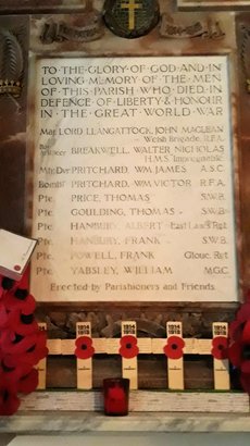 PRO PATRIA 1914 - 1918 / TO THE GLORY OF GOD AND IN / LOVING MEMORY OF THE MEN / OF THIS PARISH WHO DIED IN / DEFENCE OF LIBERTY AND HONOUR / IN THE GREAT WAR / (Names) / Erected by Parishioners and Friends / 'THEIR NAME LIVETH FOR EVERMORE' //