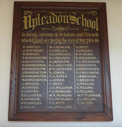 UPLEADON SCHOOL / IN LOVING MEMORY OF SCHOLARS AND FRIENDS / WHO FELL AND SERVED IN THE GREAT WAR 1914-18/[50 names in 3 columns]