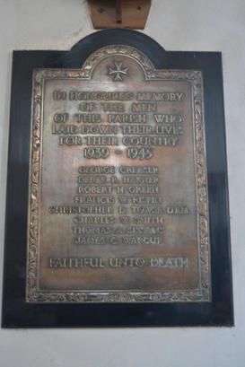 In honoured memory of the men of this parish who laid down their lives for their country 1939 1945/Names/Faithful unto death.