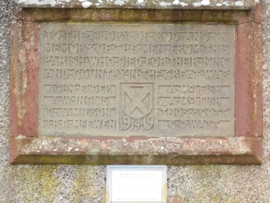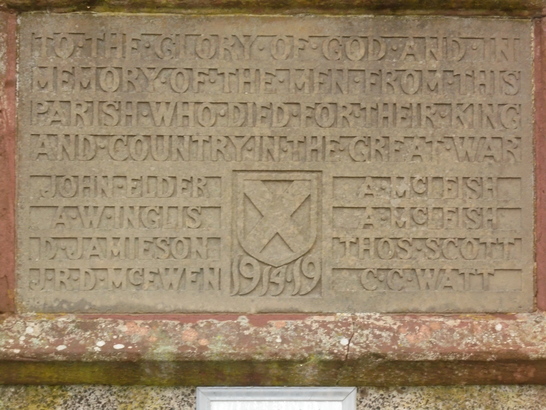 TO THE GLORY OF GOD AND IN/ MEMORY OF THE MEN FROM THIS/ PARISH WHO DIED FOR THEIR KING/ AND COUNTRY IN THE GREAT WAR/ (names)