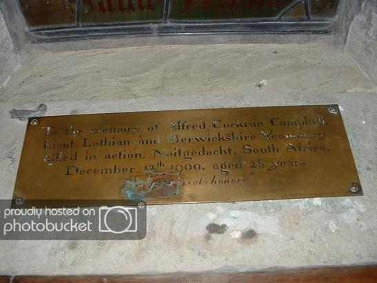 To the memory of Alfred Corkan Campbell/Lieut, Lothian and Berwickshire Yeomanry/Killed in action, Noitgedacht, South Africa/December 13th 1900, aged 28 years/
