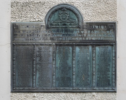 1914 1918/TO THE MEMORY OF OUR COMRADES OF/THE FORTH ROYAL GARRISON ARTILLERY/WHO FELL IN THE GREAT WAR/[names]