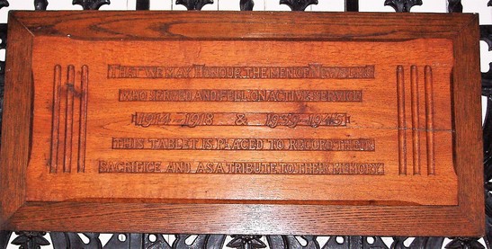 That We May Honour The Men Of Newsum’s Who Served And Fell On Active Service 1914-1918 & 1939-1945 This Tablet Is Placed To Record Their Sacrifice And As A Tribute To Their Memory