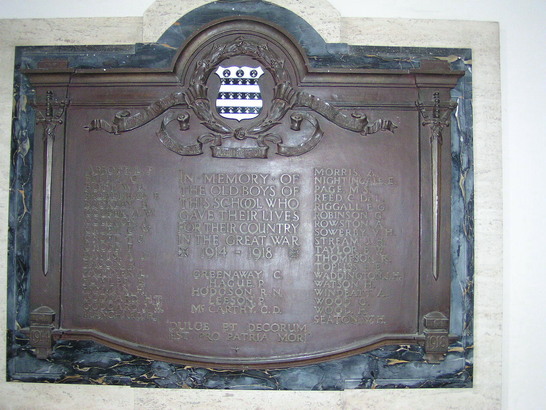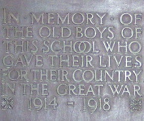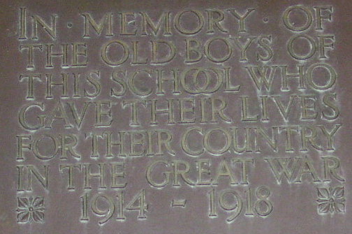 :”In Memory of the Old Boys of this School who gave their lives for their country in the Great war 1914-1918” "Dulce et Decorum Est Pro Patria Mort"