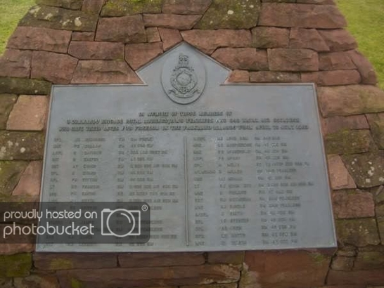 IN MEMORY OF THOSE MEMBERS OF/3 COMMANDO BRIGADE ROYAL MARINES, HMS FEARLESS AND 846 NAVAL AIR SQUADRON/WHO GAVE THEIR/LIVES FOR FREEDOM IN THE FALKLAND ISLANDS FROM APRIL TO JUNE 1982/[names]