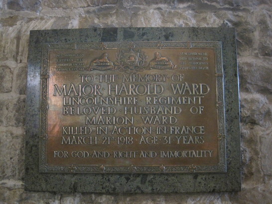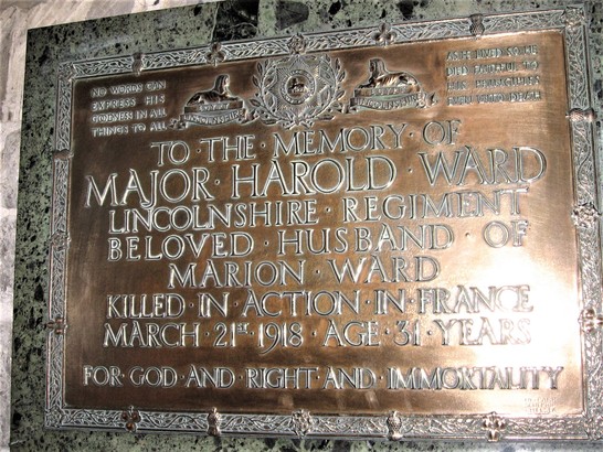 “No words can express his goodness in all things to all, as he liveth so he died, faithful to his principles even unto death” “To the memory of Major Harold Ward, Killed in action in France March 21st 1918 age 31 years” “For God and Right and Immortality”