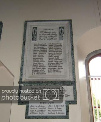 1914-1918/All honour give/to those who nobly/striving nobly fell/that we might live/[names in 2 columns]/Sacred to the memory of the/members and adherents of this/congregation who made the/supreme sacrifice in the Great War/"Their name liveth for evermore" 1939-1945/[names in 2 columns]